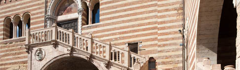 Il Palazzo del Comune, detto anche Palazzo della Ragione, tra Piazza dei Signori e Piazza delle Erbe,è un magnifico esempio di architettura civile romanica le cui facciate sono caratterizzate dal bi-cromatismo di mattoni e pietra; dal cortile lastricato centrale detto Del Mercato Vecchio si accede alla Scala della Ragione, chiamata così perché, fino a due secoli fa, portava proprio all’interno del Tribunale. La scala, in stile gotico, in origine era coperta e risale al XV secolo.