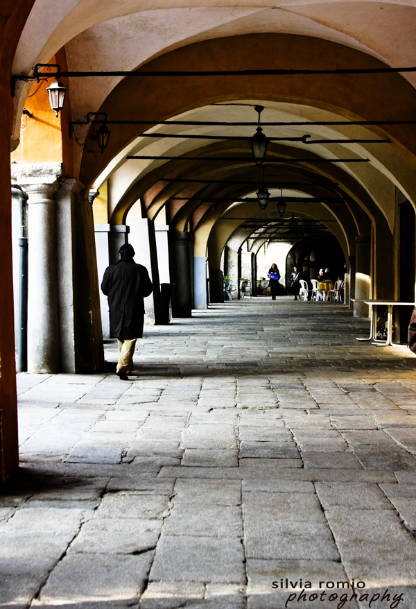 Ci incamminiamo lungo dei bei portici ammirando le decorazioni in cotto di molte facciate: sono degli elementi decorativi di influsso lombardo che vivacizzano e impreziosiscono molti palazzi e che ritroveremo anche in altri edifici in piano. La Piazza centrale, contornata da splendidi palazzi, è dominata dal cinquecentesco Palazzo Cisterna.