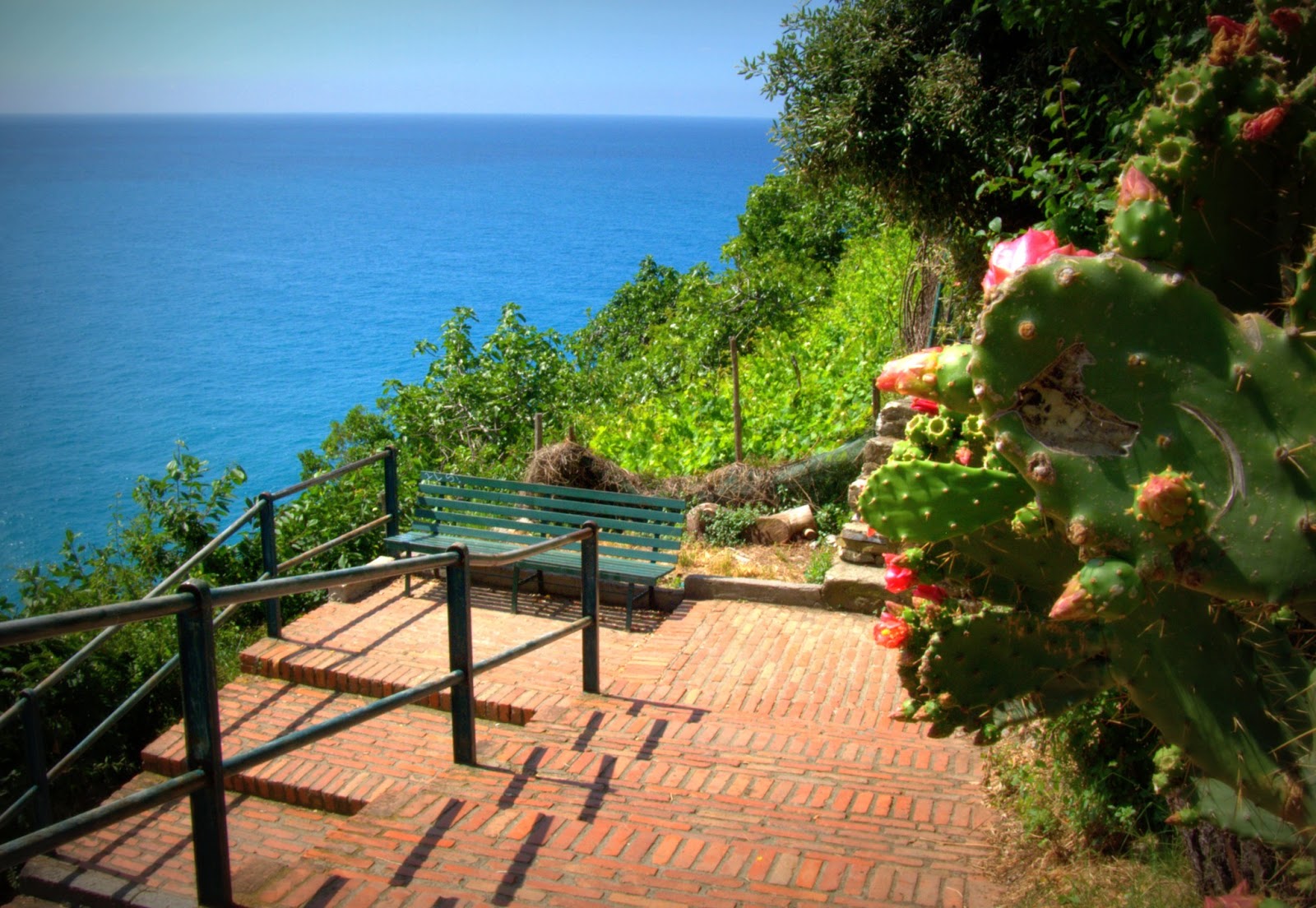 Eccoci arrivati a Corniglia, l’unico borgo delle Cinque Terre a non avere accesso diretto al mare, infatti è stata costruita sopra uno sperone di roccia. Per giungere in paese avete due possibilità: prendere il pulmino che si ferma proprio sopra la stazione del treno, oppure percorrere la lunga scalinata (377 gradini per 33 rampe) che parte poco dopo la stazione ferroviaria. Personalmente ho sempre usato la scalinata, gli autobus non passano molto spesso e se si perde la coincidenza bisogna aspettare un po’. La prima volta che ho affrontato i gradini ad essere sincera ho faticato parecchio, sembrava davvero di non arrivare più. Il sole poi in estate picchia molto forte e ci sono pochi ripari forniti dagli alberi. Quest’anno invece l’ho percorsa quasi tutta d’un fiato! Probabilmente il venticello fresco di metà Giugno mi ha dato una grossa mano. Fatto sta che non solo sono riuscita ad arrivare in cima senza stramazzare al suolo, ma mi sono anche goduta il paesaggio.