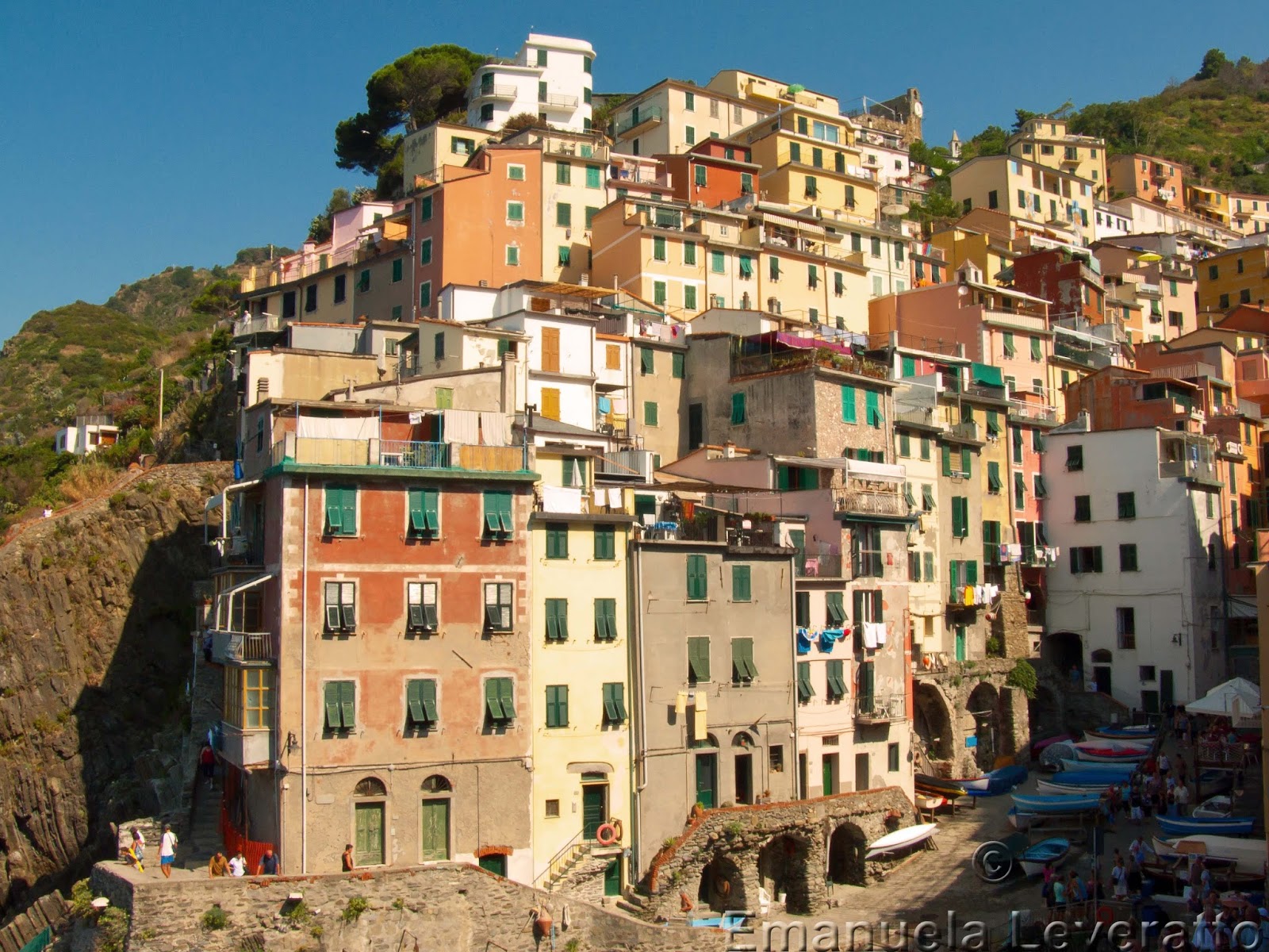 Eccoci arrivati all’ultimo borgo delle Cinque Terre, Riomaggiore passato sotto la repubblica Genovese nel 1276 dopo essere stato feudo dei Fieschi. Fu fondato nel XIII secolo alla foce del Rio Maior (da qui Riomaggiore) e a guardare bene questa foto il paese sembra davvero un corso d’acqua che nato tra le montagne va a gettarsi impetuoso nel mare. La chiesa che vedete sulla destra è la Parrocchiale di San Giovanni. Costruita nel 1340, imponente e maestosa veglia su tutto l’abitato. Per raggiungerla mi sono infilata in una piccola via e dopo una serie di gradini (particolarmente alti) sono arrivata sulla piazza antistante, e lì mi sono fermata alcuni istanti non solo per riprendere fiato ma anche per ammirare tanta bellezza.