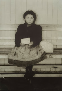 Emblema di queste ricerche è l’iconica immagine di una ragazzina seduta su una panca che tiene in mano un biglietto della Red Star Line.