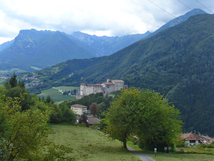 Proseguendo dopo il lago di Tenno di cui vi ha parlato Silvia, si arriva al Passo del Ballino: da lì si aprono le valli Giudicarie. Una zona verde, dove nel fondovalle si susseguono campi coltivati a mais e, poco più sopra, selve invitanti. Stenico si trova al limitare del bosco, in posizione sopraelevata: non per nulla qui sorge l’imponente castello, un tempo sede del Capitano rappresentante del Principe Vescovo di Trento.