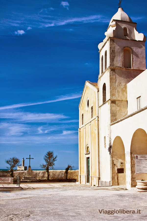 All’estrema punta del promontorio sorge la Chiesa di San Francesco, in posizione panoramica protesa verso l’Adriatico e visibile da ogni punto della città. La Chiesa ha tre lati aperti sul mare ed il quarto rivolto verso il centro. La nuda facciata bianca, anche se priva di particolari ornamenti, è incredibilmente suggestiva in particolare alla luce del pieno giorno o la sera, quando il cielo al tramonto la riveste di un tono rosato. E’ da questo punto panoramico, aperto ed esposto al respiro del mare, che si avverte lo stretto legame di Vieste con l’Adriatico, un vincolo antico e  indissolubile intorno al quale la città è nata ed è cresciuta.