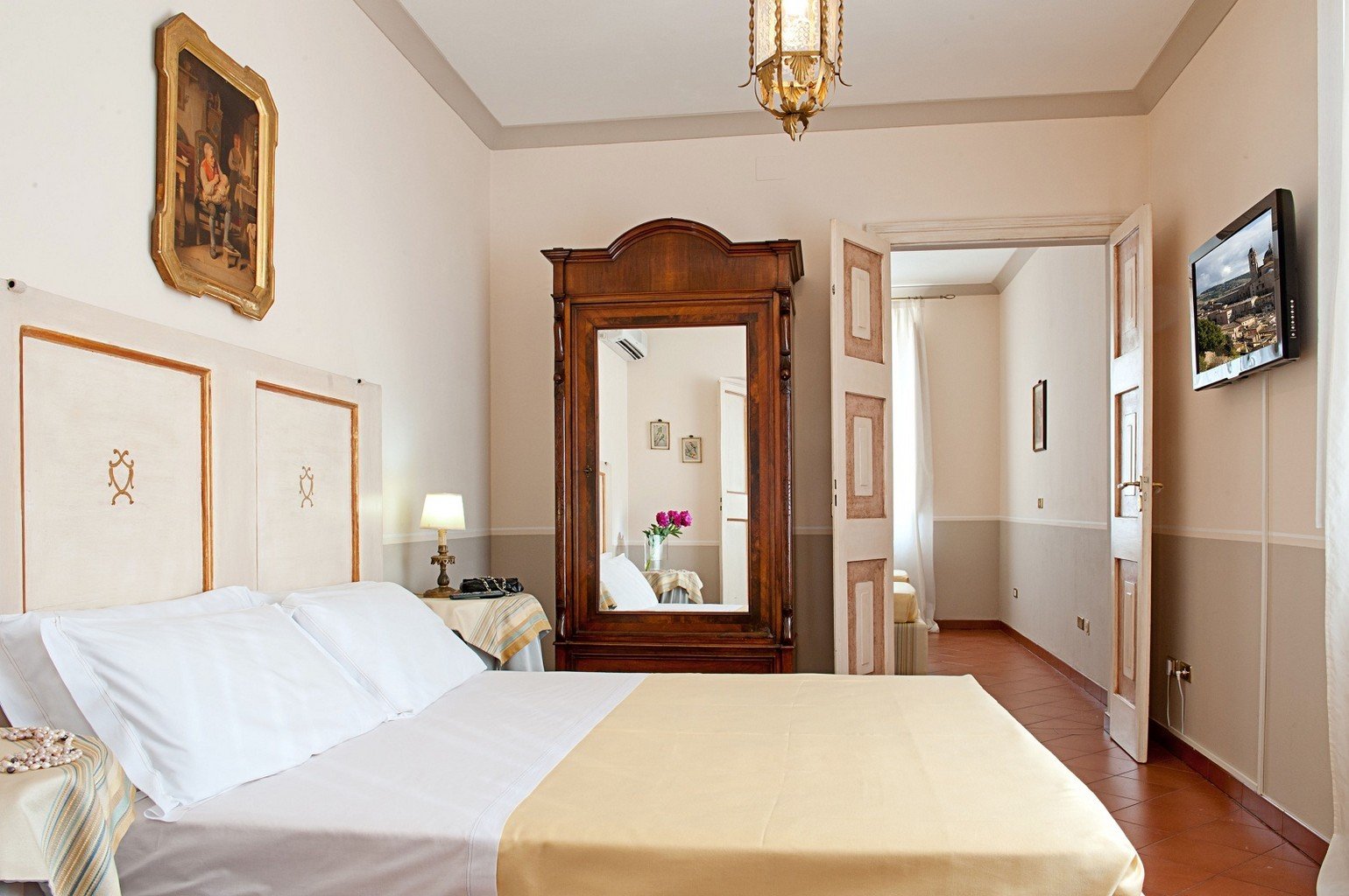 Le suites sono decorate con affreschi d’epoca e mobilio classico e dispongono di un comodo angolo cottura attrezzato che le rende perfette anche per soggiorni prolungati.