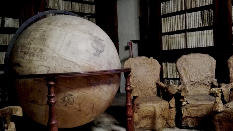 Sopra la porta spicca la dedica “A Cristina” ed entrando si nota un altro oggetto sorprendente: un mappamondo di due metri di diametro del 1713, dove vennero disegnati tutti i continenti allora conosciuti. Altro gioiello della Pinacoteca è l’Adorazione dei pastori di Peter Paul Rubens, pittore originario di Anversa, che non mise mai piede a Fermo, ma da Roma inviò un’emozionante tela realizzata per la locale Chiesa di S. Filippo. Un Gesù splendente di luce che investe i pastori arrivati a rendergli omaggio e la stessa Madonna inginocchiata accanto alla mangiatoia.