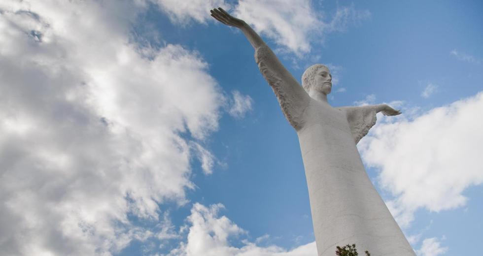 La statua è alta oltre 21 metri ed ha un’apertura delle braccia di 19 metri. La sola testa misura 3 metri di altezza.
