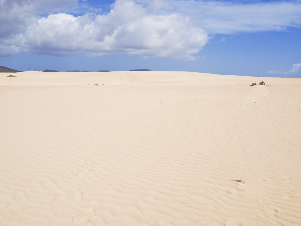 Mi è bastato posare gli occhi sulle morbide dune di Corralejo, simili a dolci montagne di zucchero, per capire che Fuerteventura è diversa, più selvaggia e affascinante, delle vicine Gran Canaria è Tenerife. E’ proprio da qui che ho iniziato la mia esplorazione dell’isola, dal suo cuore candido e delicato. Immaginate di camminare tra dune di fine sabbia bianca cinte da un lato da alture di roccia rossa e dall’altro da un mare turchino. Aggiungete un cielo blu e completate con una spruzzata di nuvole, l’incanto è servito!